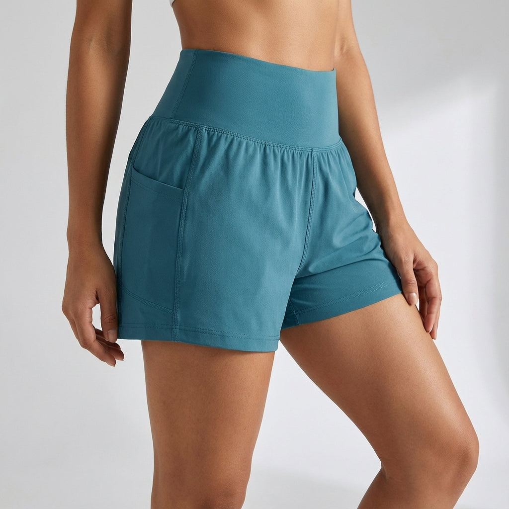 Veel sporters kennen het probleem: oncomfortabele shorts die omhoog kruipen of te weinig steun bieden bij intensieve oefeningen. Deze shorts bieden een oplossing door een geïntegreerde binnenbroek te combineren met een losse buitenlaag. De hoge taille ondersteunt de middenriff en zorgt voor een veilige pasvorm zonder te knellen. Zijzakken en een discrete achterzak maken het opbergen van je telefoon en kleine spullen eenvoudig.
