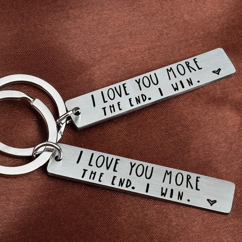 - PERFECT VERJAARDAGSCADEAU: Perfect voor Valentijnsdag of wanneer dan ook je moet zeggen 'Ik hou van je,' deze roestvrijstalen sleutelhanger leest " I Love You More The End I Win".