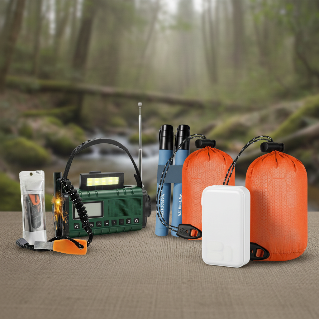 Unforeseen situations such as power outages, bad weather, or outdoor emergencies can quickly become overwhelming. This set offers targeted solutions for the main problems, such as cold, lack of drinking water, lack of information, and a missing heat source. Heat-insulating sleeping bags retain body heat and prevent hypothermia. Water filters provide clean drinking water, even off the grid.