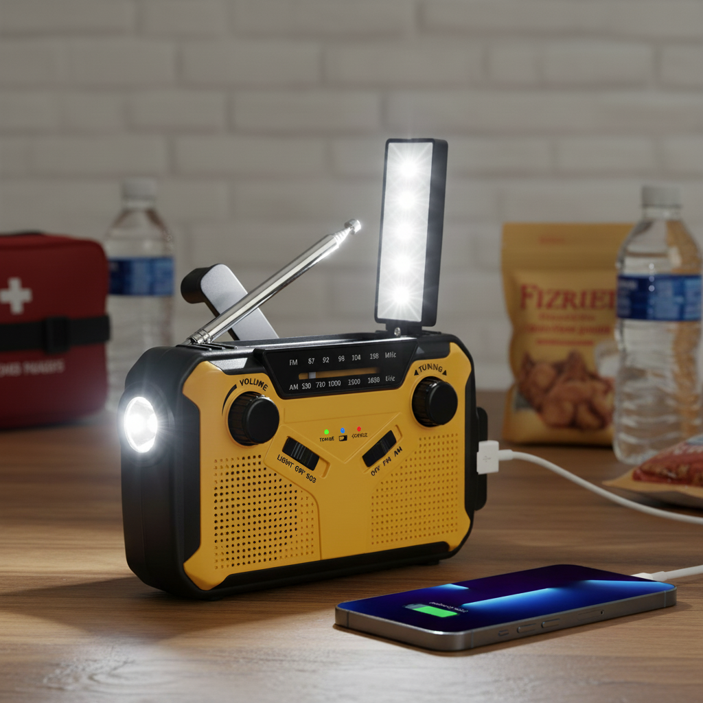 It can be unsettling when the power goes out or you suddenly find yourself without light and connection during a trip. This device solves this problem with multiple power sources, LED lighting, and an integrated radio function. Whether manual dynamo, solar energy, or batteries, it remains reliably usable. The built-in SOS signal increases safety in emergencies.