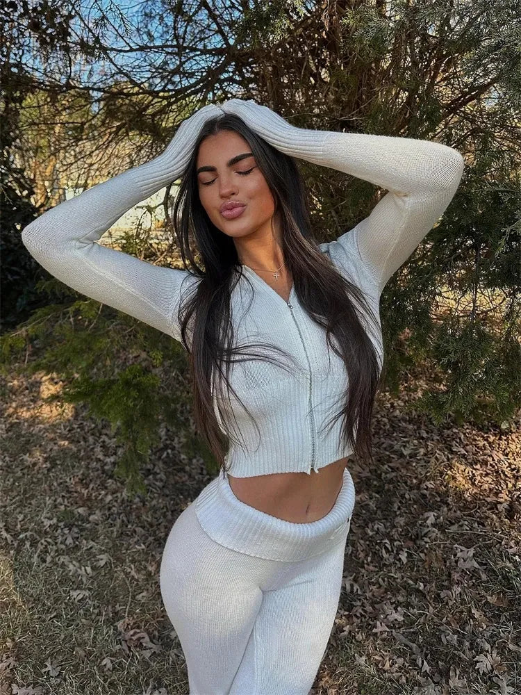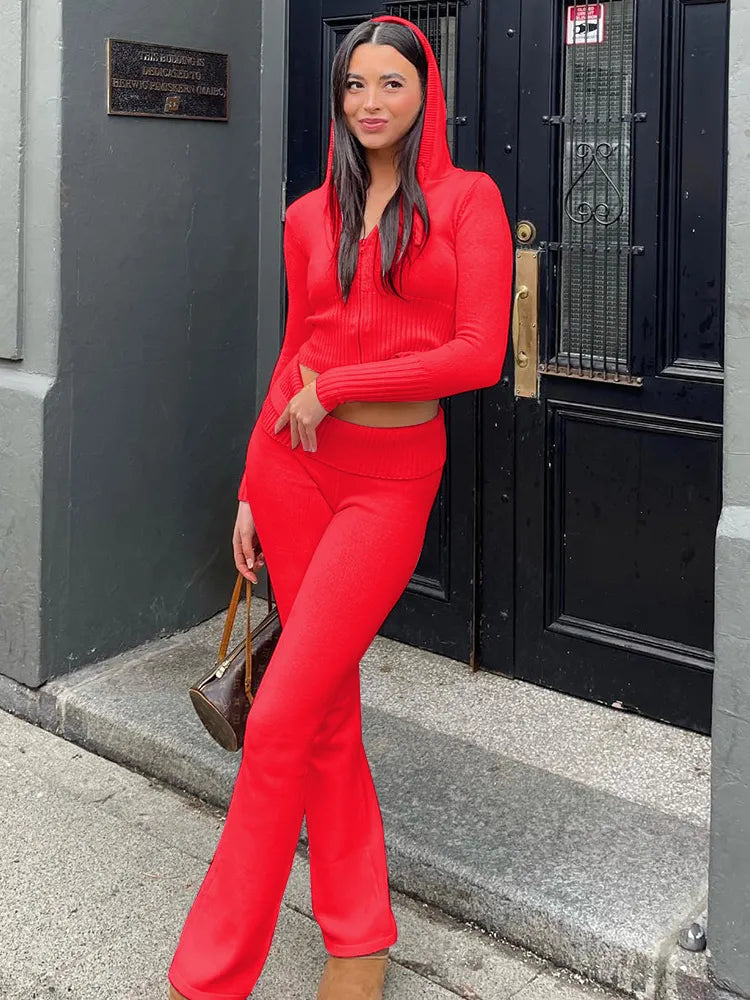 Oversized loungewear is a thing of the past! Loungewear should be trendy and a bit sexy. You never know who might suddenly show up at the door. The Elynn Loungewear is stylish, warm, soft, and sexy. Actually, there's no better combination! Beautiful cropped design and nice flared pants. With hood for extra comfort!
