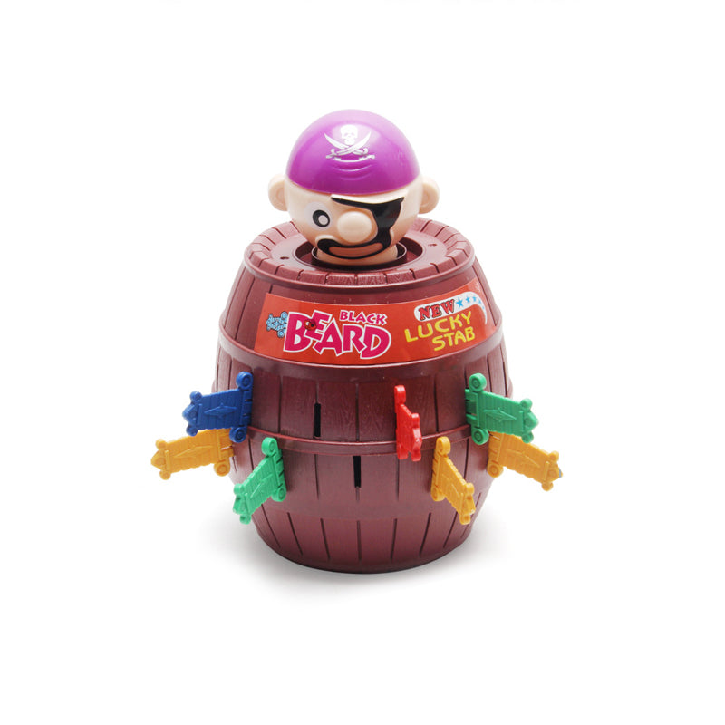 Prepare for a treasure trove of fun and excitement with the Pirate Plunge Table Game. This interactive pirate game brings fun and competition, perfect for game nights with family and friends. Let the swords fly as you try to conquer the pirate's barrel without making him jump!